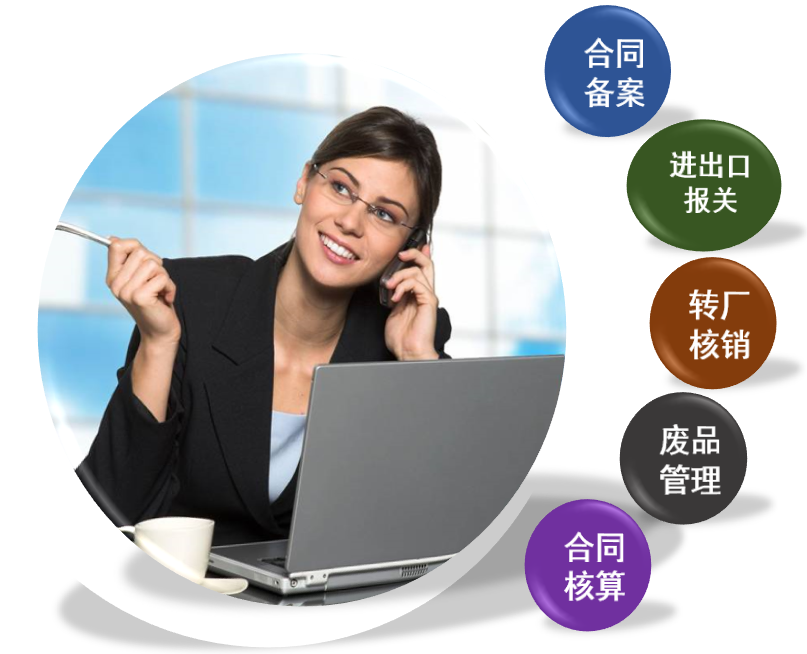 主要包括:合同管理、进、出口报关单、转厂管理、合同核销、合同平衡报表等相关的明细报表和统计分析报表。