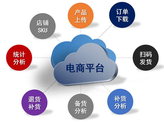 主要包括:店铺资料,店铺商品资料,电商补货分析,电商补货计划,电商补货,电商订单采集,电商订单导入,电商扫码发货,异常订单处理,电商备货分析,电商退货记录等以及电商管理相关明细报表和统计分析报表。