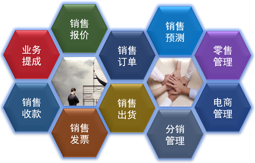 主要包括:销售定价、销售报价、Forecast订单、Forecast变更单、Forecast结案、销售订单、销售订单变更、销售订单结案、销售出货通知、销售出货、客户验收、销售退货、PACKLIST、销售发票、应收结账管理等功能,以及销售管理相关的明细报表和统计分析报表及图表。