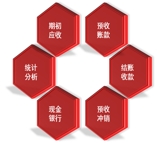 主要包括:应收账款管理、应收费用、预收款管理、对账管理、收款、坏账管理、账户收支总账、账户收支明细账,以及应收管理相关的明细报表和统计分析报表及图表。