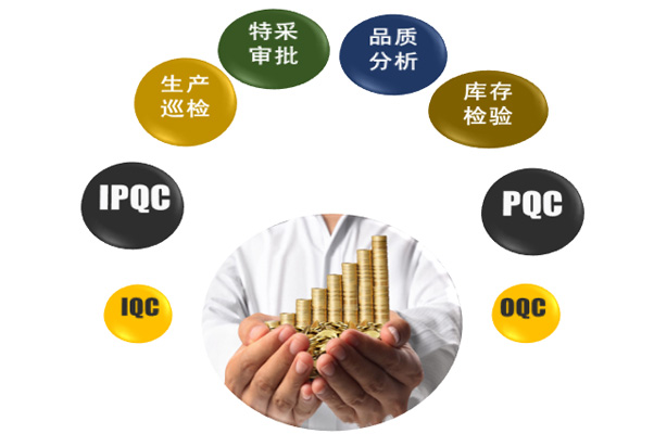 主要包括:QC检验标准制定、采购入库检验(IQC)、委外入库检验(IQC)、生产入库检验(PQC) 、出货检验(OQC)等相关检验工作,以及品质管理相关的明细报表和统计分析报表及图表。